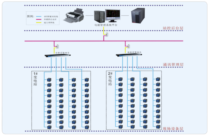 2.各个变电所内进出线回路的电能和电参量的数据采集、电能计量。