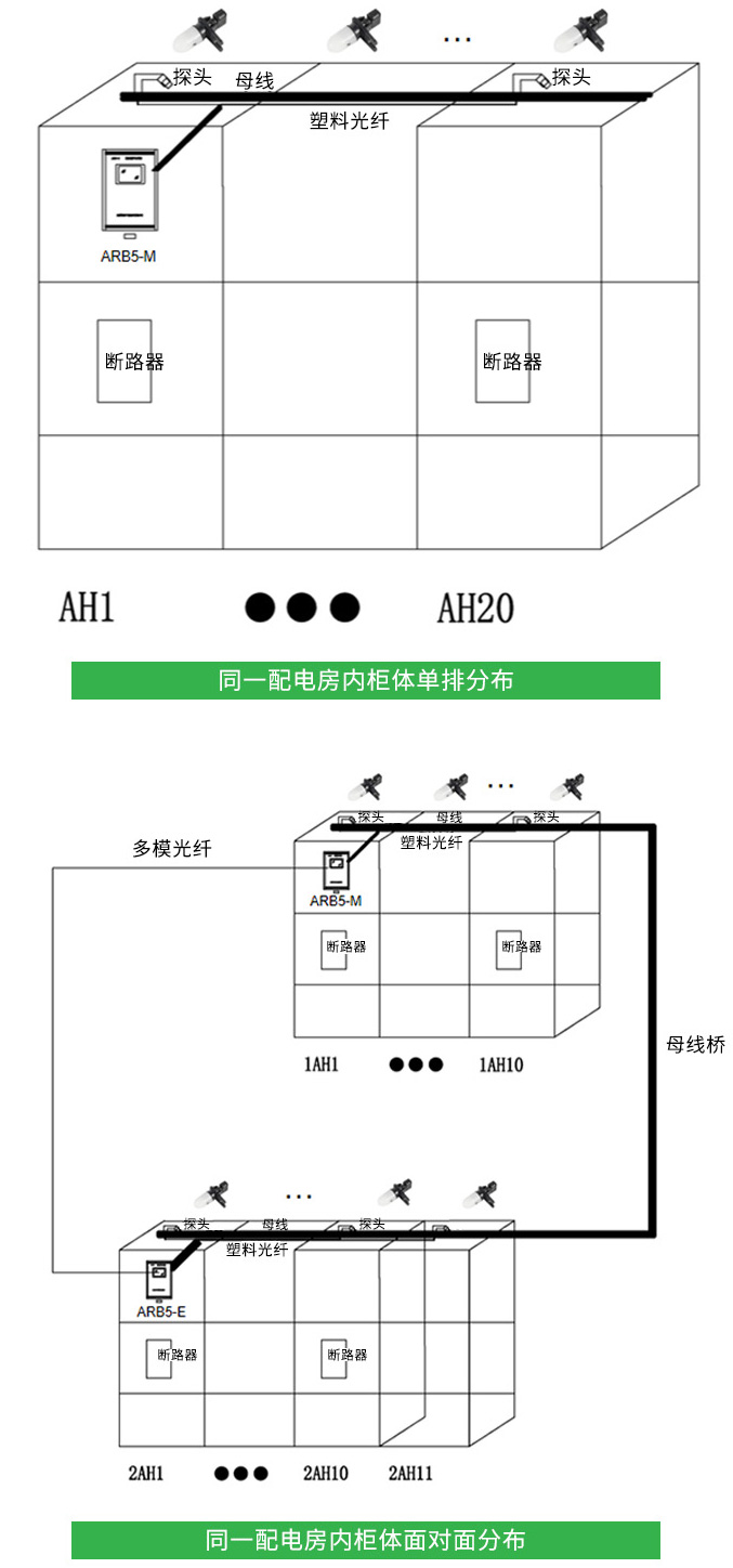 主控单元支持1块弧光主控板信号接收,同时本身自带9个弧光探头的采集信号;