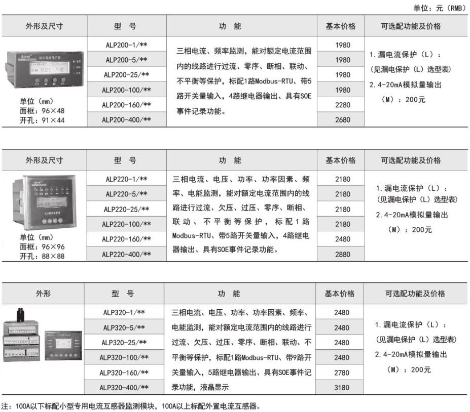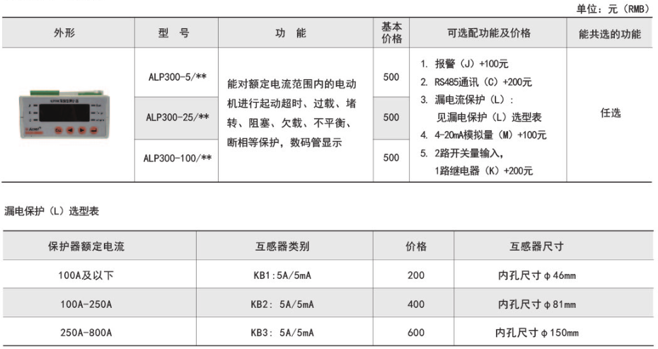 技术要求:输入电压AC 220V;工作频率50Hz;电流变比200A/5A;漏电保护KB2模块;准确级0.5。