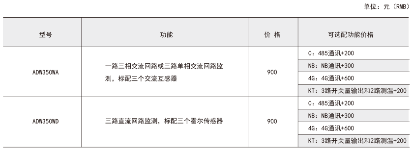 ADW350无线计量仪表有交流、直流之分,适用于计量低压网络用电监测、电信基站用电监测、太阳能供电计量等场合。