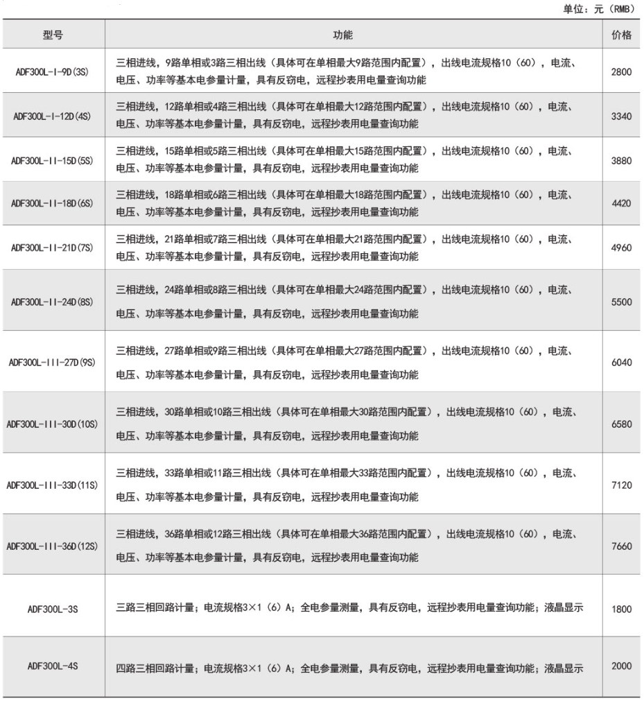 ADF300系列多用户计量箱是一种电子式智能化多用户电能表,设计采用一户一计量方案,具有计量准确度高、户与户之间计量互不干扰、集中安装、集中管理优势。可以同时计量12户三相、36户单相、单/三相回路混...