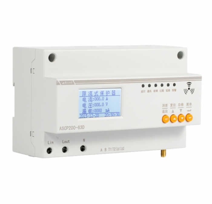 ASCP200-1型电气防火限流式保护器是单相限流式保护器,较大额定电流为63A。主要功能如下:
