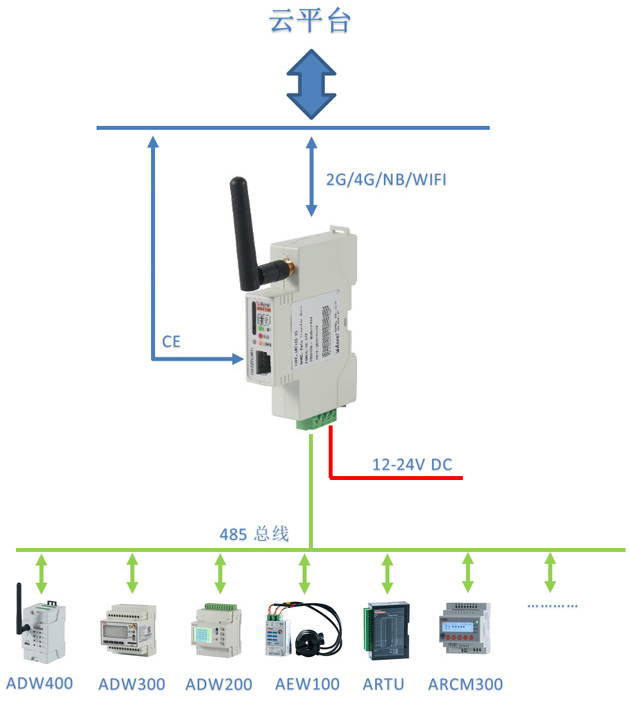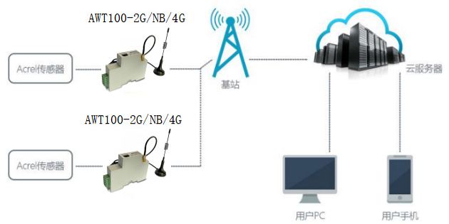 注:①AWT100-2G/NB/4G无线通信终端能通过安科瑞平台协议与安科瑞服务器通讯。