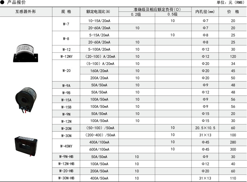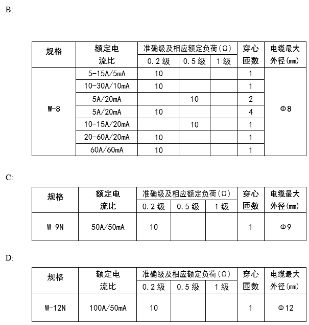 技术要求:输入电流:20-60A,二次输出信号20mA,准确级0.2级,额定负荷10Ω