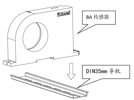 选择适合的地方安装标准 DIN35mm 导轨,将 BA 传感器安装到导轨上即可;