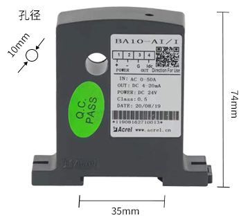 技术要求:输入电流AC 0-50A;输出DC 4-20mA;穿孔φ10mm;准确级0.5。