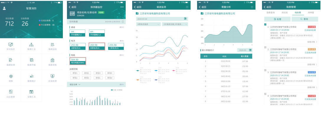 APP支持Android、iOS操作系统,方便用户查看电气火灾、防排烟、消防水、消防设备电源、防火门、消防设备管理、视频 监控、火灾报警等子系统的实时监控数据、报警信息、能耗统计等。