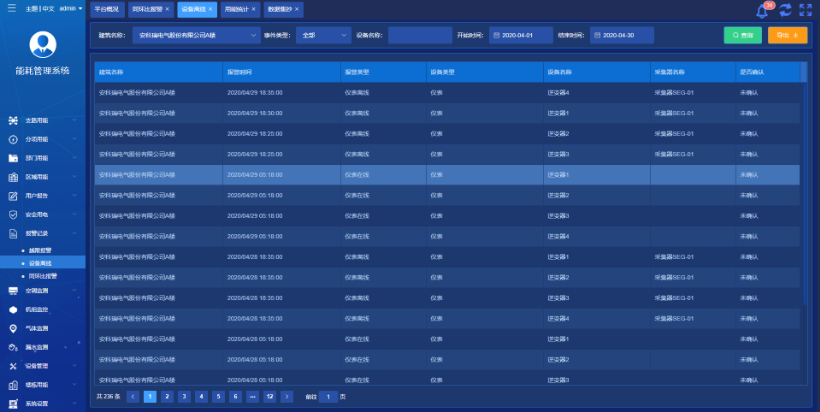 支持多种不同的报警类型,为保证平台运行,提供仪表与网关的故障报警提醒,提供多种能耗预警模型供用户选择与配置。