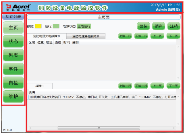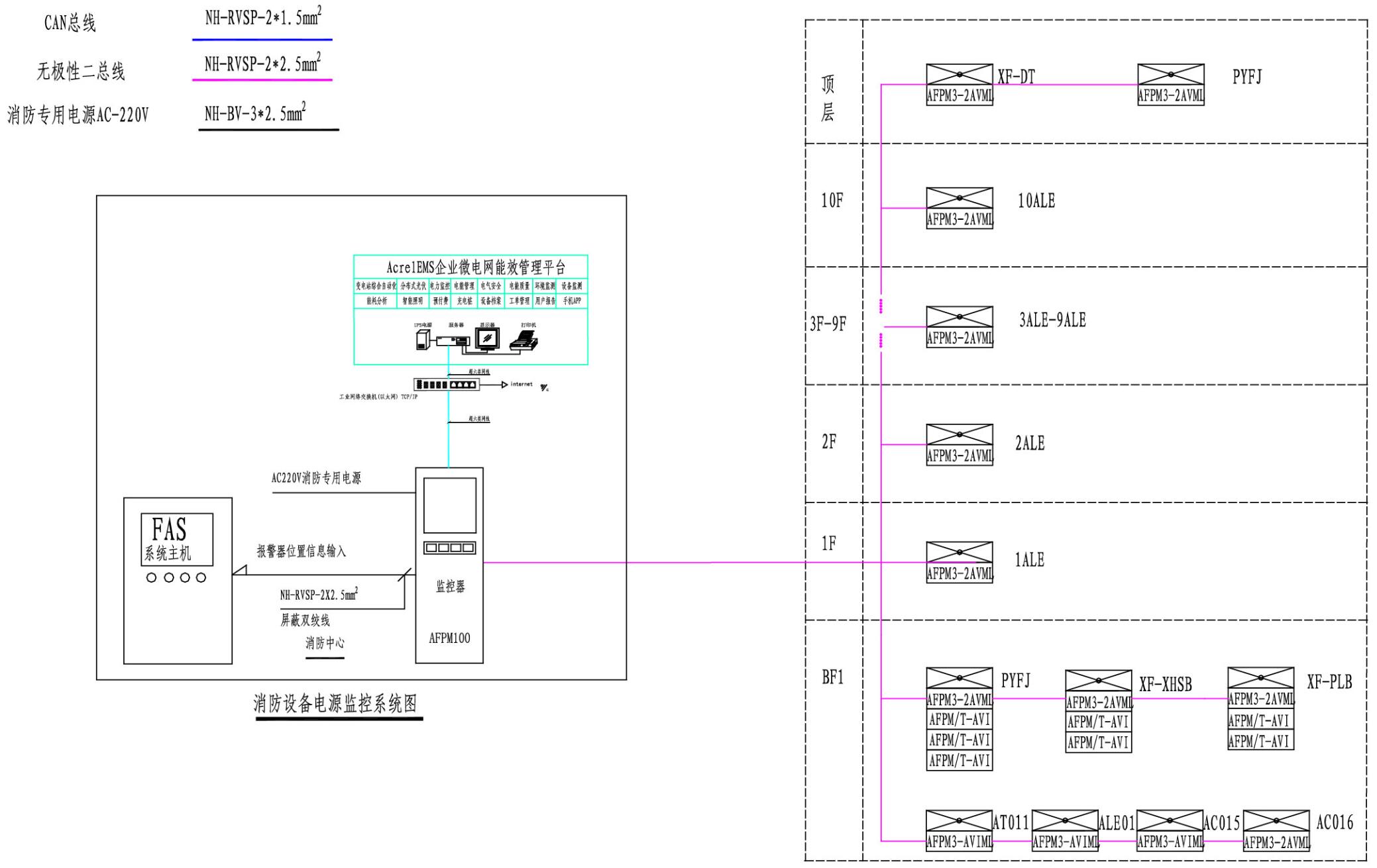 AFPM系列消防设备电源监控系统是依据国家标准《消防设备电源监控系统》而设计,针对消防设备的电源进行实时监测的系统。通过检测消防设备电源的电流值、电压值和开关状态等状态,判断电源是否存在断路、短路、过压、欠压、过流以及缺相、错相、过载等状态并进行报警和记录。此监控系统具有可靠性、实时性并具有数字化、智能化、网络化、自动化和连续监控的特性,实时反应出被监控设备电源的状况,并集中显示,从而可有效避免火灾发生时,消防设备由于电源故障而无法正常工作的危急情况,大限度地保障消防联动系统的可靠性。并根据用户的需求,还可以满足与AcrelEMS企业微电网管理云平台或电气火灾自动报警系统等进行数据交换和共享。