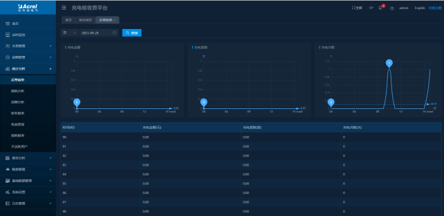 可查看指定时段充电站和充电桩的用电量,显示对应的能耗趋势图并进行同环比分析。