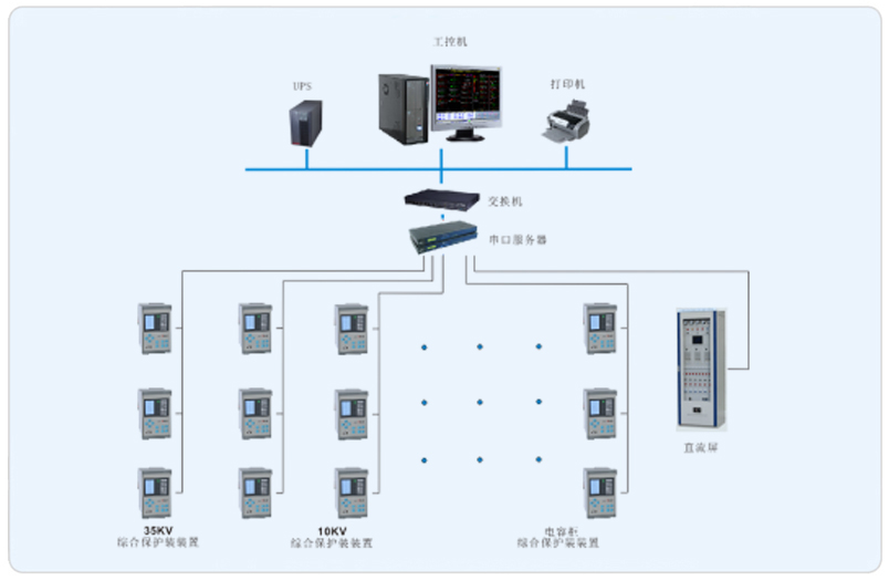 本项目有两路35KV电源进线,经两台12500KVA变压器变压为10KV对项目进行供电,系统采用Acrel-2000型电力监控系统,整个系统采用网络分布式结构,监控主机2层变电所值班室,综合保护装置、直流屏、多功能仪表等设备采用RS485总线组网接入变配电站内的数据采集器,进而接入变电站值班室电力监控主机。该项目实现了上海徐工工程机械有限公司变电站电力系统的智能管理。