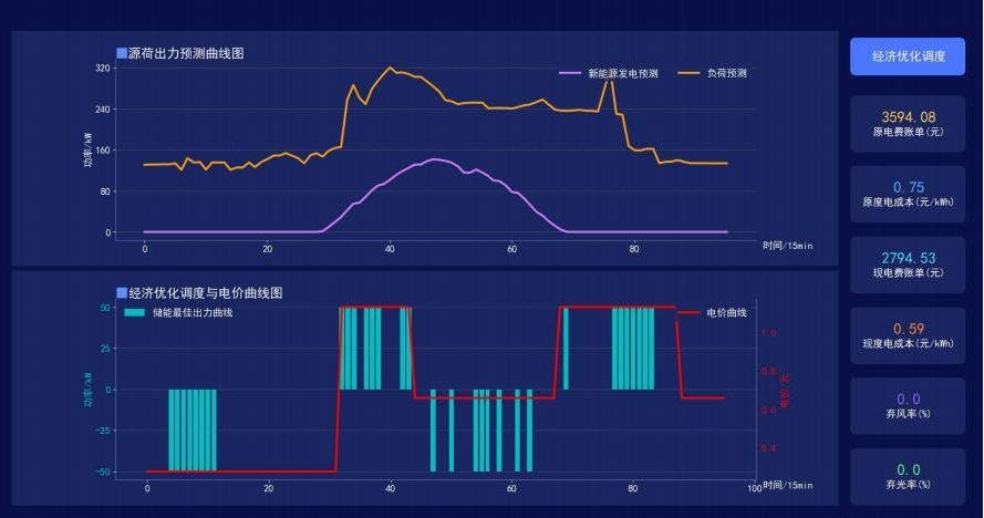 直观展示微电网系统电量、碳排、成本、设备运行等各类数据。