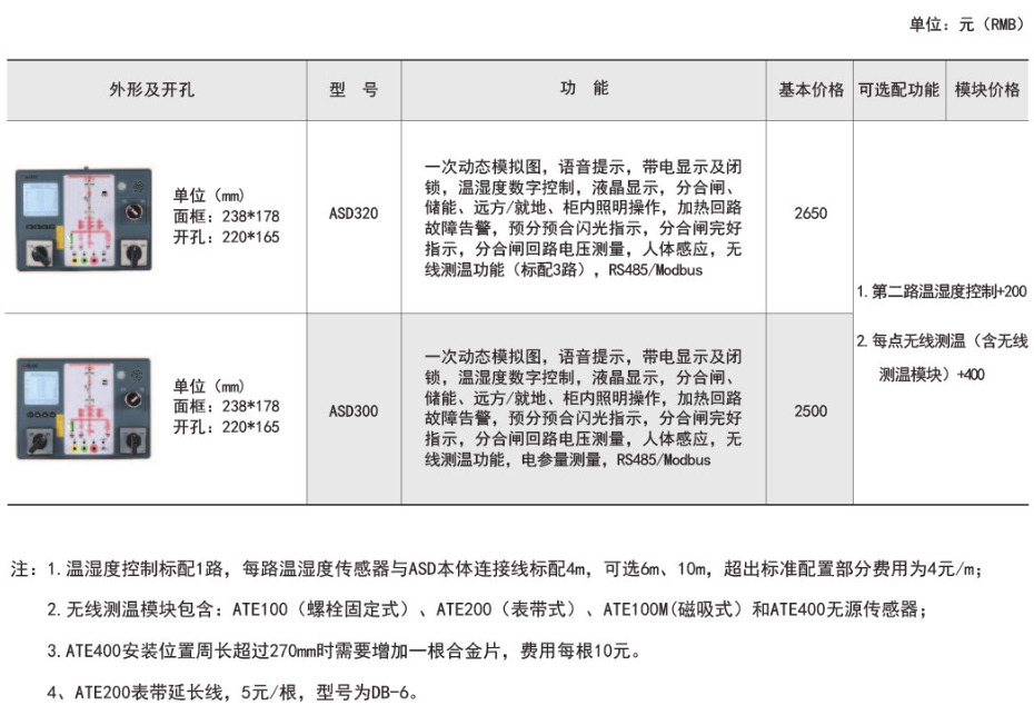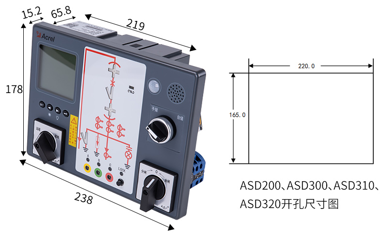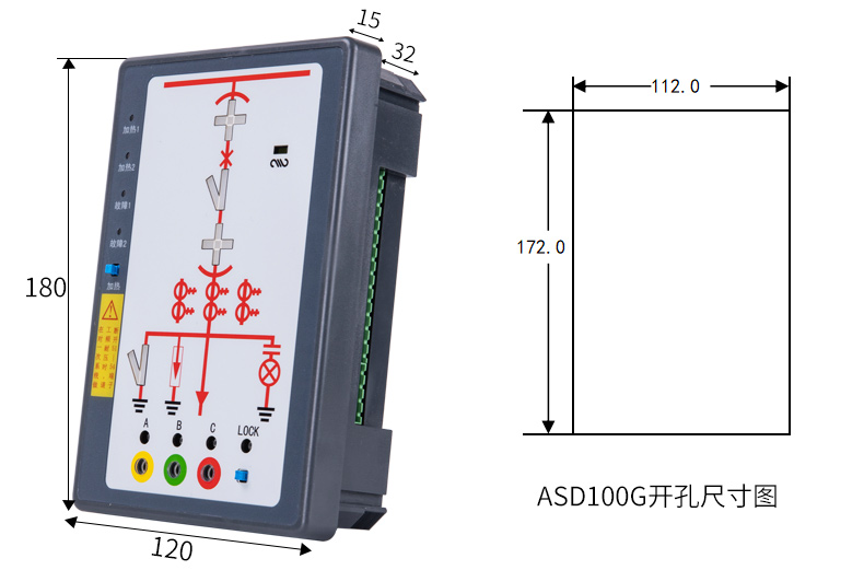 ASD系列开关柜综合测控装置具有一次回路模拟图及开关状态指示、高压带电显示、自动温湿度控制、人体感应自动照明、语音提示、电参数测量及RS485通讯接口等功能,集操作、显示于一体,直观地体现柜内元件的工...