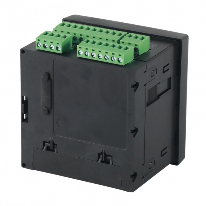 ARTM-Pn采用面板嵌入式安装,首先柜体盘面上制作规定尺寸的正方形槽孔,装置取下支架后嵌入槽孔,再将支架推入卡槽锁紧即可。