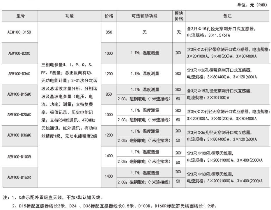 AEW100无线计量仪表主要用于计量低压网络的三相有功电能,具有RS485通讯和470MHz无线通讯功能,方便用户进行用电监测、集抄和管理。低压系统计量回路。具体型号:AEW100技术要求:3×220...