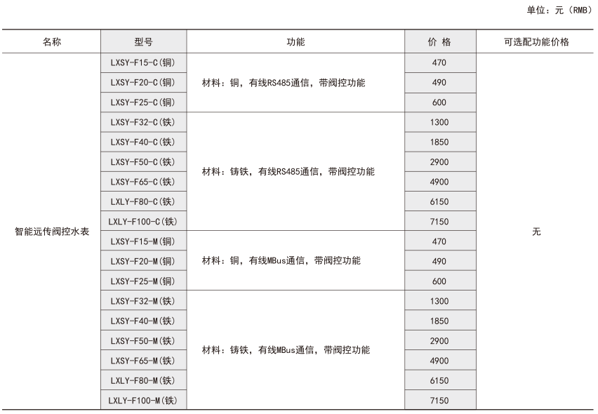 技术要求:带阀控功能,口径ND20mm,RS485通讯接口