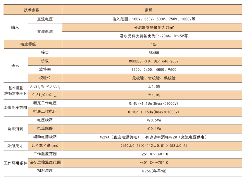 技术要求:电压输入DC750V,电流输入DC300A/75mV