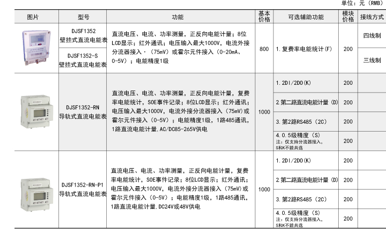 DJSF1352-RN型电子式直流电能表采用液晶显示,具有RS485功能可与微机进行数据交换。产品由测量单元、数据处理单元、通讯单元、显示单元等组成,具有电能测量、数据处理、实时监测等功能。适合充电桩...