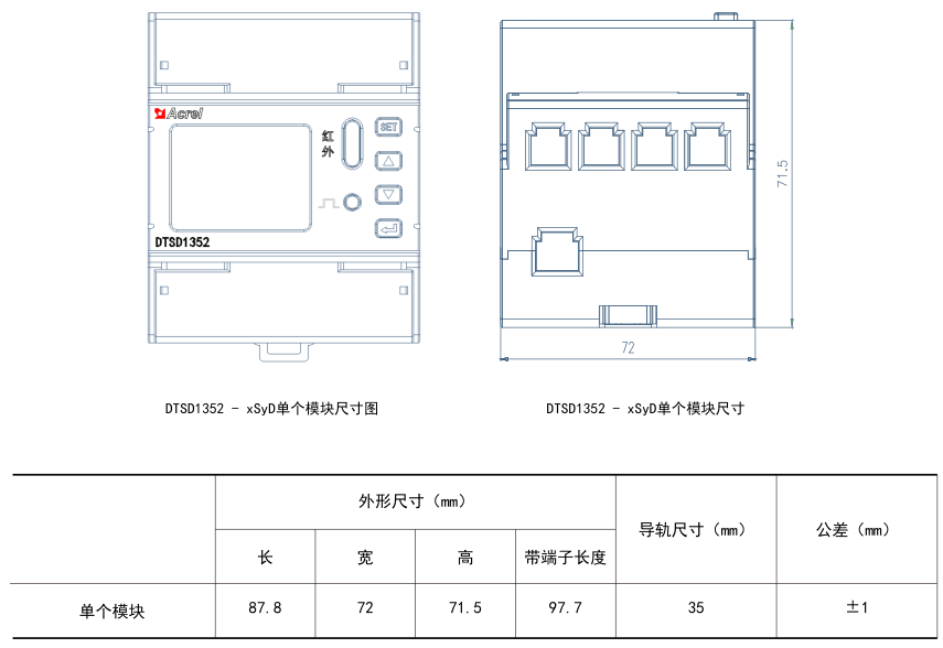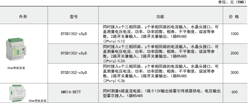 DTSD1352 - xSyD系列导轨式多回路电力仪表主要用于多个三相回路的全电参量测量,最多可同时接入x个三相回路、y个单相回路的电流输入。可直接或间接测量电压电流、功率、功率因数、相角、不平衡度、谐波等参数。