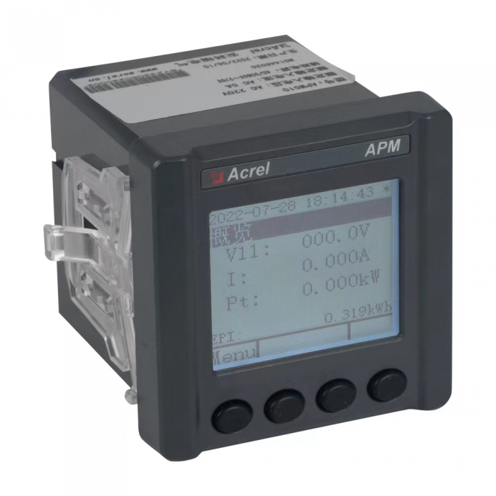 配电柜用的电流表和电压表采用嵌入式安装。实时检测和显示三相电压、三相电流、有功功率、频率、电度等多项电能参数,有就地显示功能,并可通过所带的 RS485 接口,在需要的时候可将所检测的数据上传到上位机监控中心。同时提供RS485 Modbus RTU和Etehrnet Modbus TCP通信,用于远程通讯和设置。
