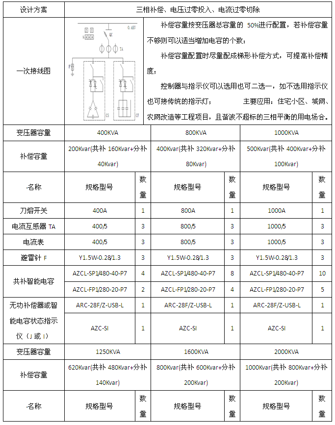 应用于0.4kV、50Hz低压配电系统。