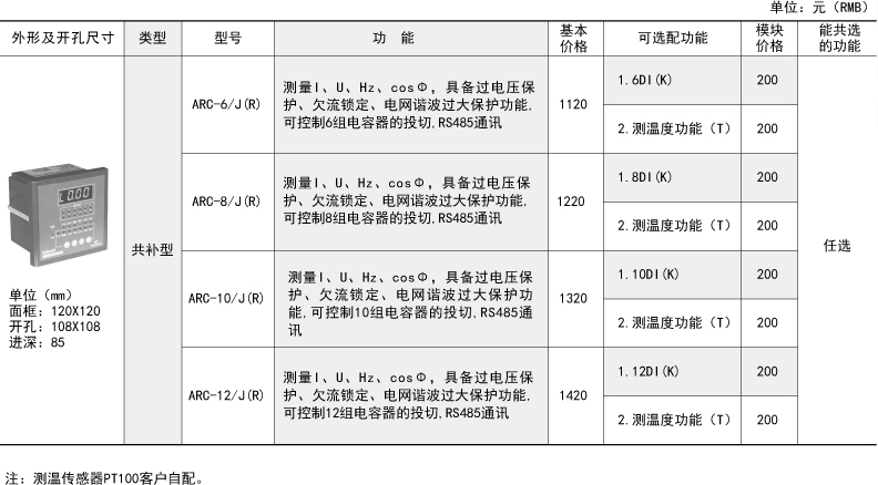 技术要求:输入三相电压AC220V;输入电流AC5A;投切方式顺序投切;补偿方式三相共补;投切控制路数6路;开关量输入6路;柜内温度检测。