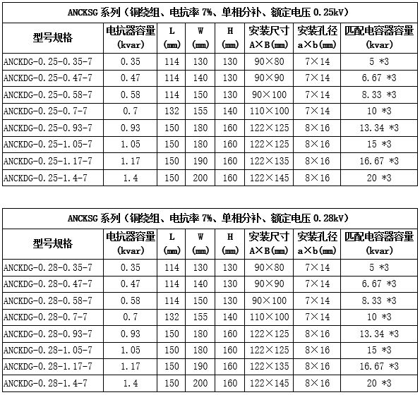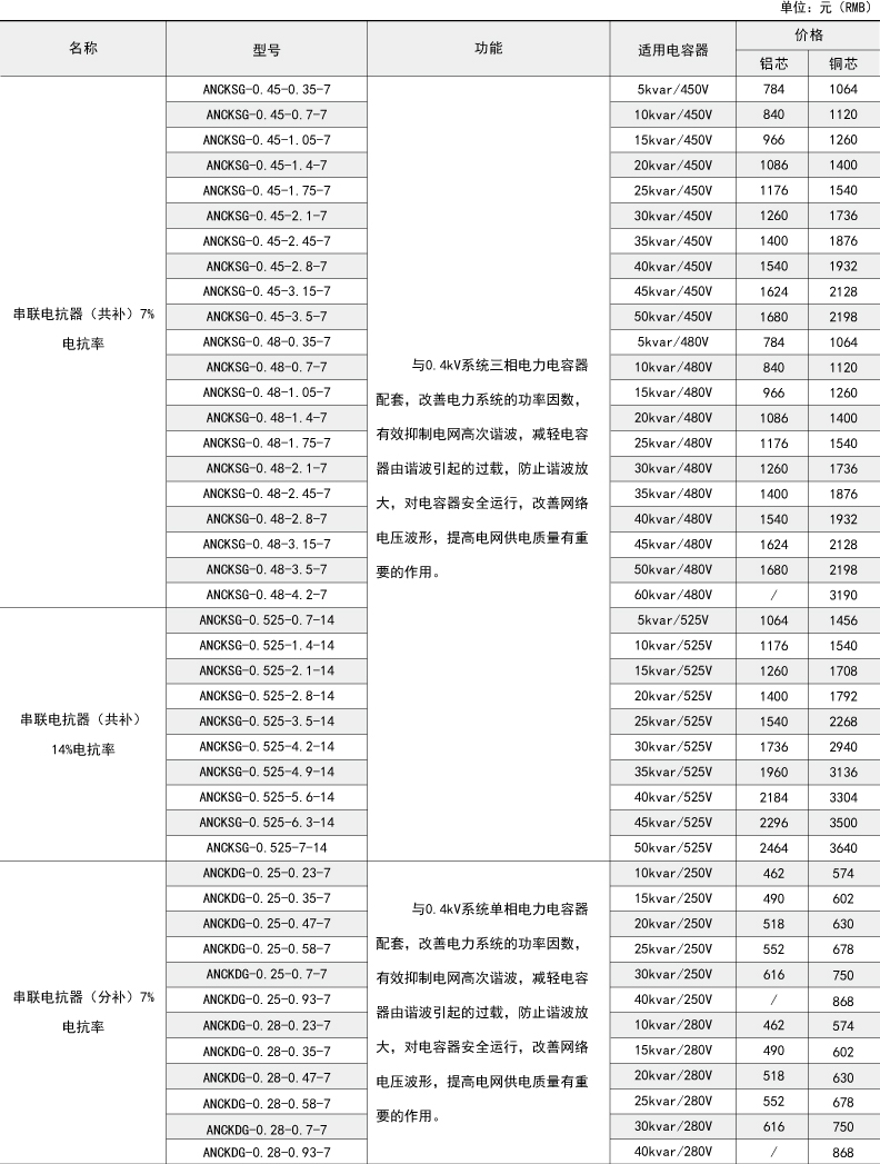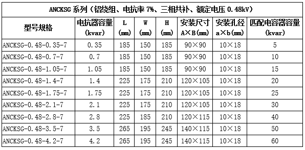 技术要求:适用电容器5kVAR;7%电抗率;铜芯