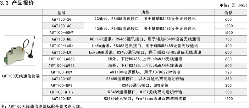 注:①AWT100-2G/NB/4G无线通信终端能通过安科瑞平台协议与安科瑞服务器通讯。