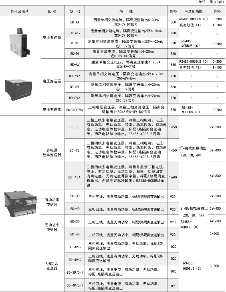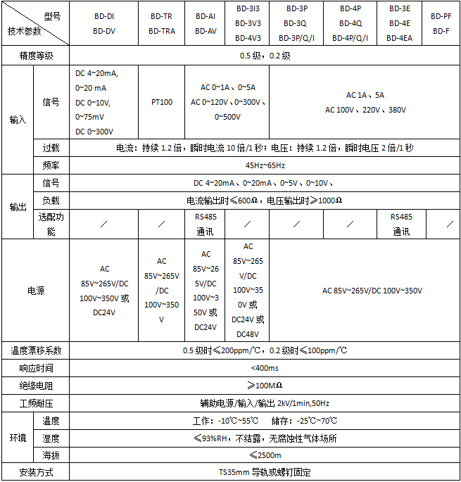 BD系列电力变送器是一种将电网中的电流、电压、频率、功率、功率因数等电参量,经隔离变送成线性的直流模拟信号或数字信号的装置。电力系统具体型号:BD-AI技术要求:输入AC 0-5A;输出DC 4-20...