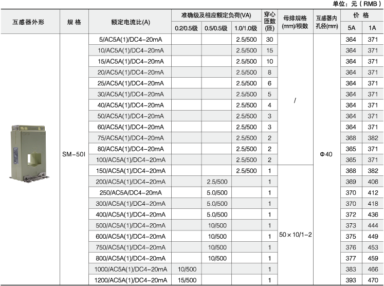 具体型号:AKH-0.66/SM SM-50I 100/AC5A/DC4-20mA