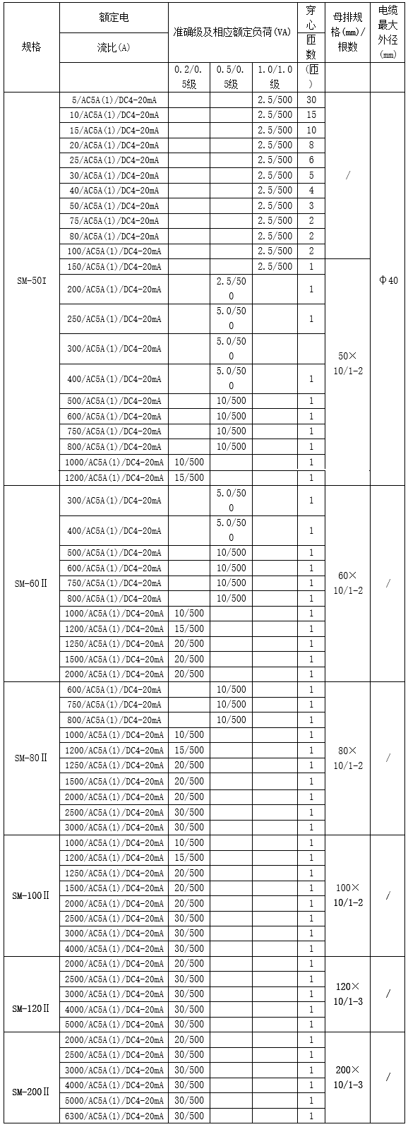 技术要求:额定电流比100A/AC5A,AC5A/DC4-20mA模拟量;准确级1.0级、1.0级;额定负荷2.5VA、0.02VA;穿心匝数2匝;内孔径φ40mm。