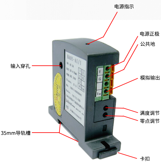 BA系列产品应用电磁感应原理,对电网中的交流电流进行实时测量,将其隔离变换为标准的直流信号输出。