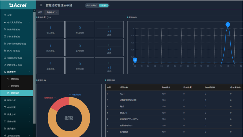 安科瑞智慧消防综合管理云平台基于物联网、大数据、云计算等现代信息技术,将分散的火灾自动报警设备、电气火灾监控设备、智慧烟感探测器、智慧消防用水等设备连接形成网络,并对这些设备的状态进行智能化感知、识别、定位,实时动态采集消防信息,通过云平台进行数据分析、挖掘和趋势分析,帮助实现科学预警火灾、网格化管理、落实多元责任监管等目标。填补了原先针对“九小场所”和危化品生产企业无法有效监控的空白,适应于所有公建和民建,实现了无人化值守智慧消防,实现智慧消防“自动化”、“智能化”、“系统化”、用电管理“精细化”的实际需求。