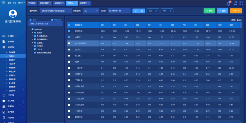按照分项/区域/部门等不同的组织方式进行报表统计与展示,方便用户从多个维度使用用能报表。