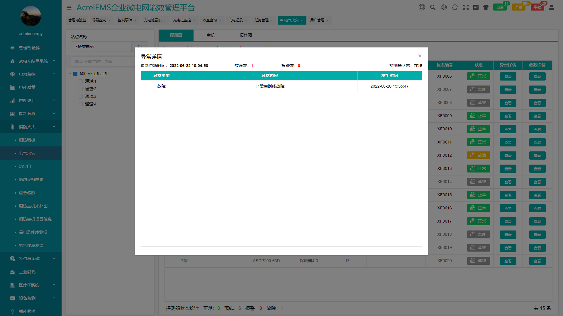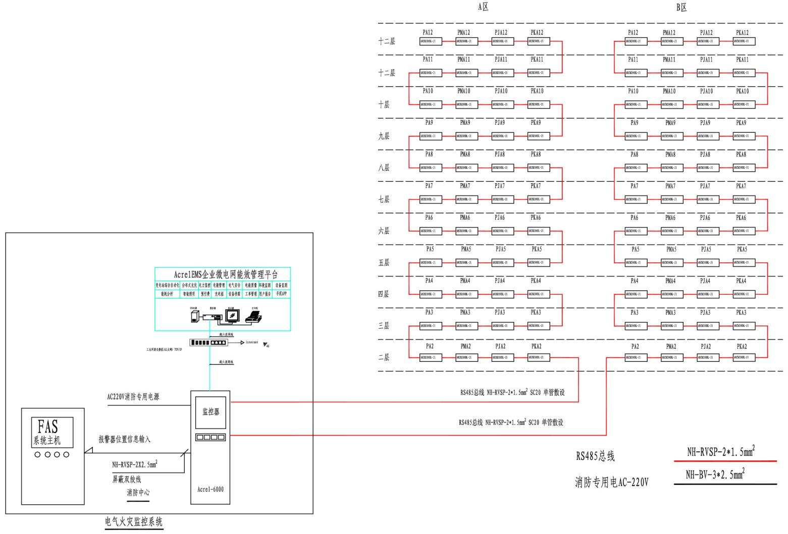 Acrel-6000电气火灾监控系统,是根据国家现行规范标准由安科瑞电气股份有限公司研发的全数字化独立运行的系统,已通过国家消防电子产品质量监督检验中心的消防电子产品试验认证,并且均通过严格的EMC电磁兼容试验,保证了该系列产品在低压配电系统中的安全正常运行,现均已批量生产并在全国得到广泛地应用。该系统通过对剩余电流、过电流、过电压、温度和故障电弧等信号的采集与监视,实现对电气火灾的早期预防和报警,当必要时还能联动切除被检测到剩余电流、温度和故障电弧等超标的配电回路;并根据用户的需求,还可以满足与AcrelEMS企业微电网管理云平台或火灾自动报警系统等进行数据交换和共享。