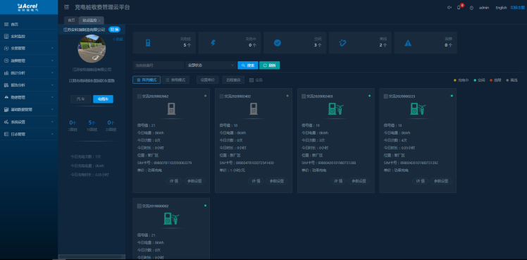 | 远程充电桩电能管理系统 | Acrel-9000 | (一)资源管理充电站裆案管理,充电桩裆案管理,用户裆案管理,充电桩异常交易监测(二)交易结算充电价格策略管理,预收费管理,账单管理,营收和财务相关报表(三)用户管理用户注册,用户登录,用户帐户管理(四)充电服务充电设施搜索,充电设施查看,地图寻址,在线自助支付充电,充电结算,导航等(五)微信小程序扫码充电,账单查询、充电信息监测等功能(六)数据服务数据采集,致据存储和解析(七)收益隔天结转到帐 |